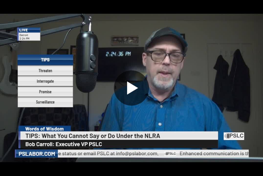 It’s vital to remain calm in these times, get skilled legal counsel and adhere to the important TIPS Bob Carroll is providing. In the case that I am describing above the company owner didn’t hire legal counsel until he was hit by our first Unfair Labor Practice charge was filed.
